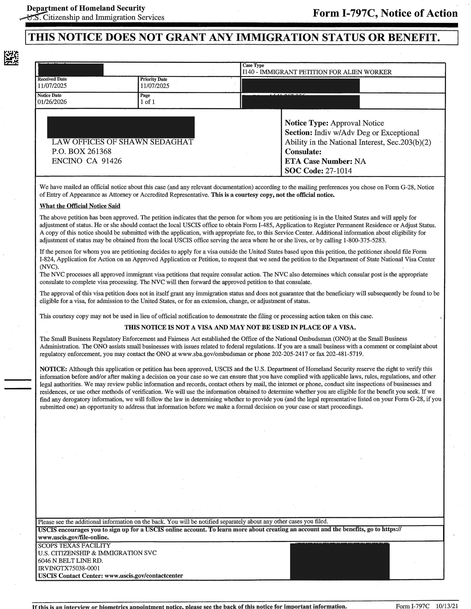 Sedaghat Law attorneys are US Immigration Experts and bring years of dedicated experience navigating the complexities of EB1 and EB2 visa categories, ensuring that your application is backed by persuasive evidence and strong legal arguments.