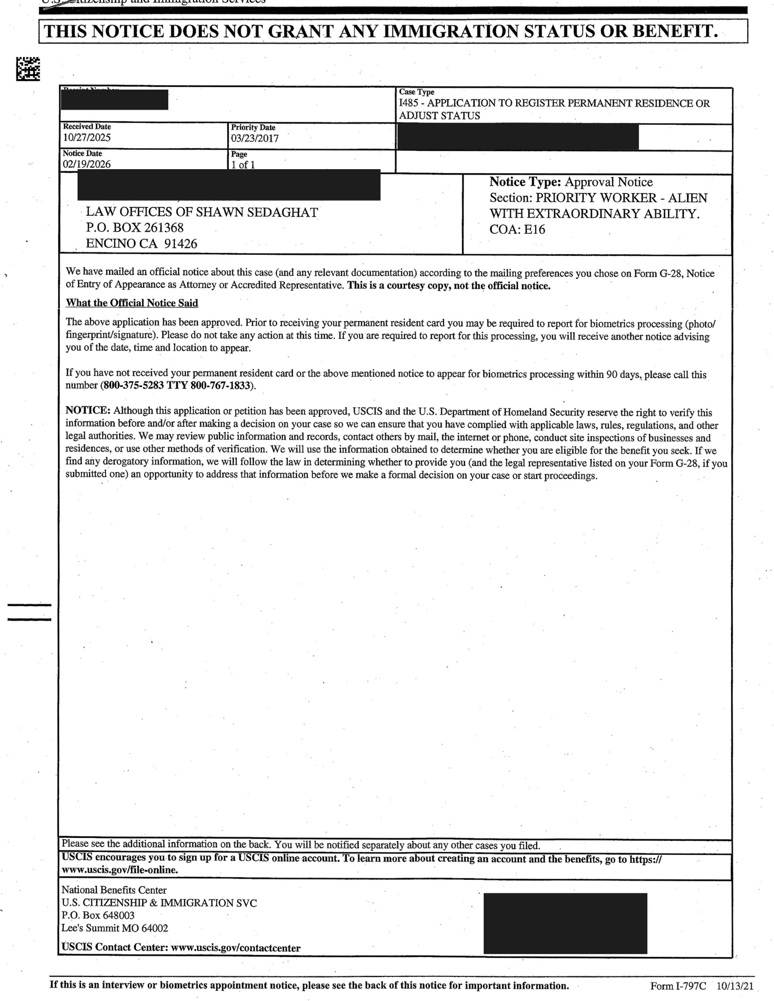 EB-2 NIW and EB-1 APPROVALS